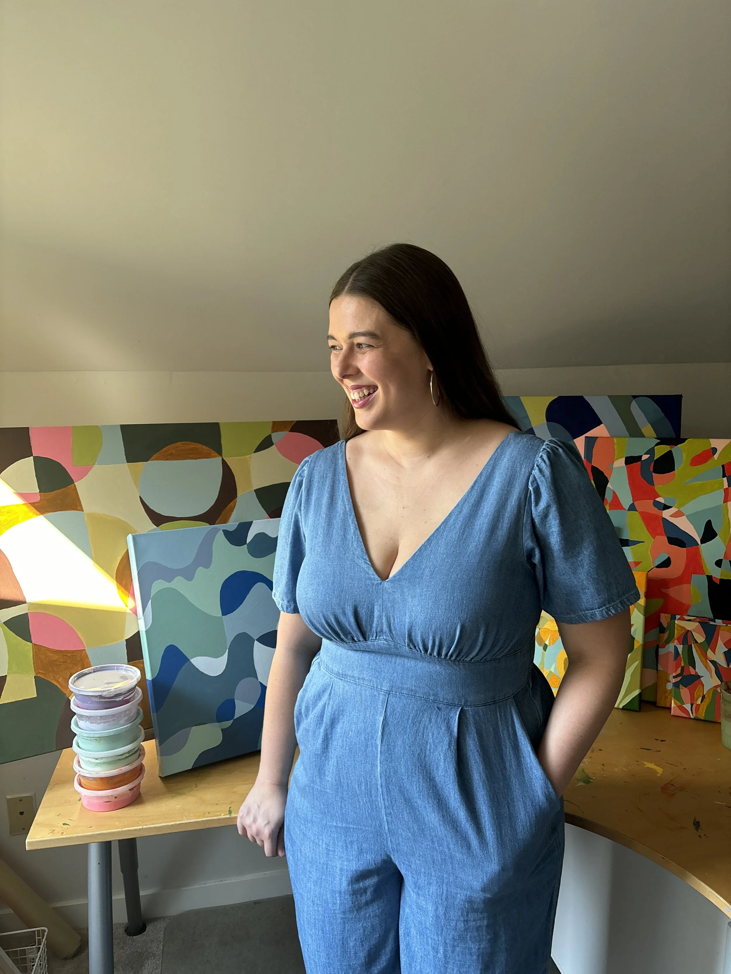 With a BFA in Graphic Design from VCUarts, she brings a unique blend of formal design education and an unwavering love for the expressive medium of paint. After welcoming her son into the world in 2021, Anna felt a deep longing to shift away from her screen-based design job and reconnect with her creative roots. Painting became her sanctuary, a meditative practice that allows her to embrace bold, vivid colors and draw inspiration from the simple joys and wonders that surround her. Through her art, Anna captures the essence of joy and everyday magic.